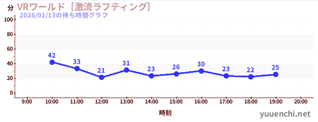 2026/01/13の待ち時間グラフ (VRワールド[激流ラフティング])