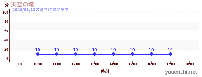 2026/01/13の待ち時間グラフ (天空レールコースター疾風)