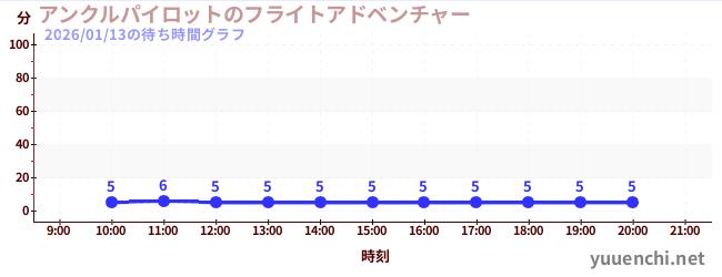 2026/01/13の待ち時間グラフ (アンクルパイロットのフライトアドベンチャー)