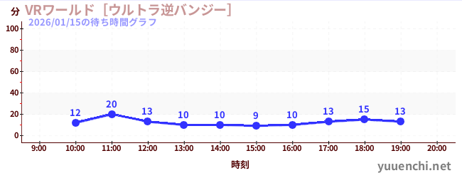 2026/01/15の待ち時間グラフ (VRワールド[ウルトラ逆バンジー])