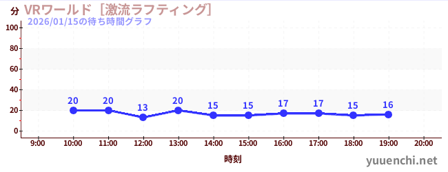 2026/01/15の待ち時間グラフ (VRワールド[激流ラフティング])