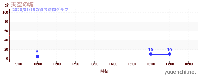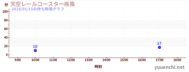 2026/01/15の待ち時間グラフ (天空レールコースター疾風)