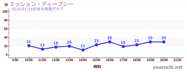 2026/01/15の待ち時間グラフ (ミッション・ディープシー)