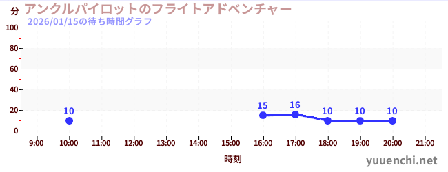 2026/01/15の待ち時間グラフ (アンクルパイロットのフライトアドベンチャー)