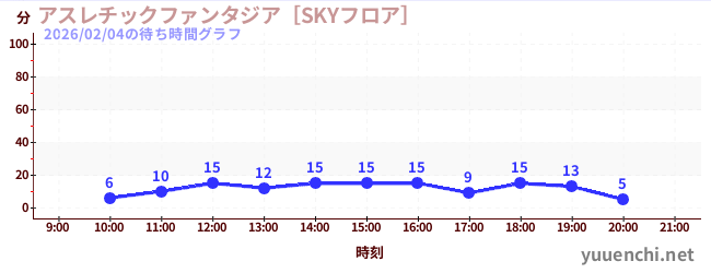 2026/02/04の待ち時間グラフ (アスレチックファンタジア[SKYフロア])