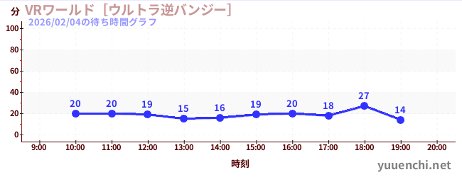 2026/02/04の待ち時間グラフ (VRワールド[ウルトラ逆バンジー])