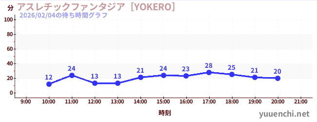 2026/02/04の待ち時間グラフ (アスレチックファンタジア[YOKERO])