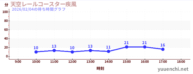 2026/02/04の待ち時間グラフ (天空レールコースター疾風)