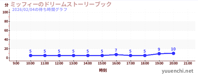 2026/02/04の待ち時間グラフ (ミッフィーのドリームストーリーブック)