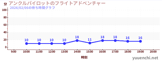 2026/02/06の待ち時間グラフ (アンクルパイロットのフライトアドベンチャー)