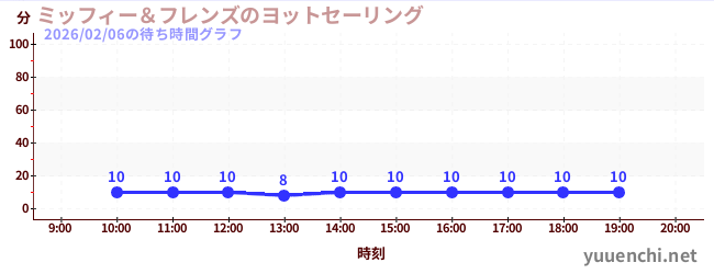 2026/02/06の待ち時間グラフ (ミッフィー&フレンズのヨットセーリング)