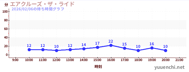 2026/02/06の待ち時間グラフ (エアクルーズ・ザ・ライド)