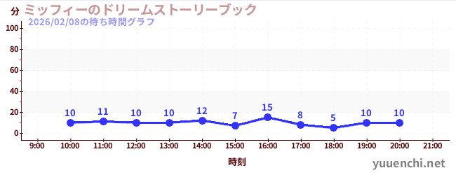 2026/02/08の待ち時間グラフ (ミッフィーのドリームストーリーブック)