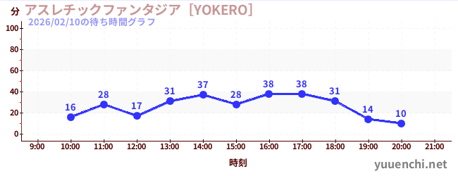 2026/02/10の待ち時間グラフ (アスレチックファンタジア[YOKERO])