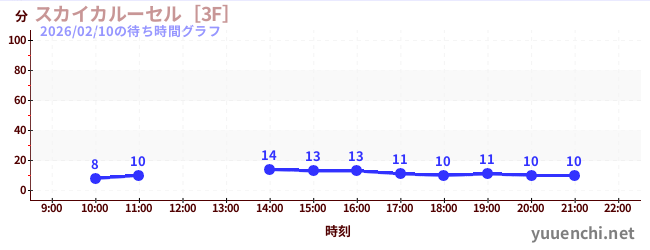 2026/02/10の待ち時間グラフ (スカイカルーセル[3F])