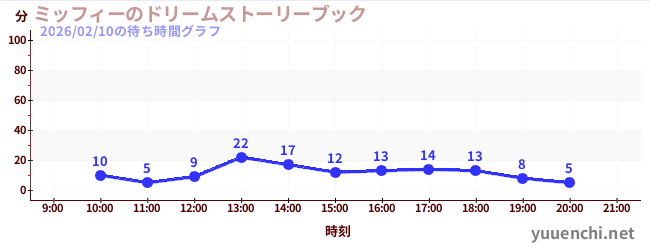2026/02/10の待ち時間グラフ (ミッフィーのドリームストーリーブック)