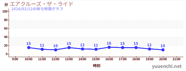 2026/02/12の待ち時間グラフ (エアクルーズ・ザ・ライド)