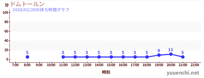 2026/02/20の待ち時間グラフ (ドムトールン)