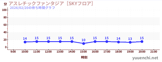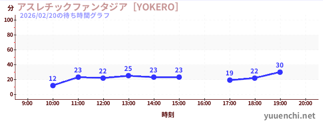 2026/02/20の待ち時間グラフ (アスレチックファンタジア[YOKERO])
