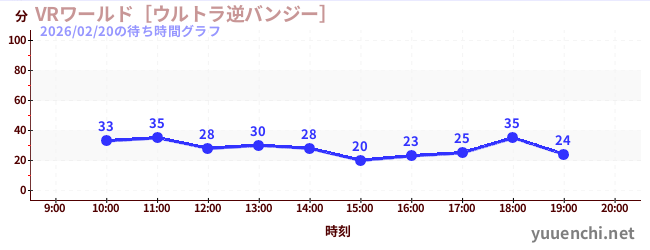 2026/02/20の待ち時間グラフ (VRワールド[ウルトラ逆バンジー])