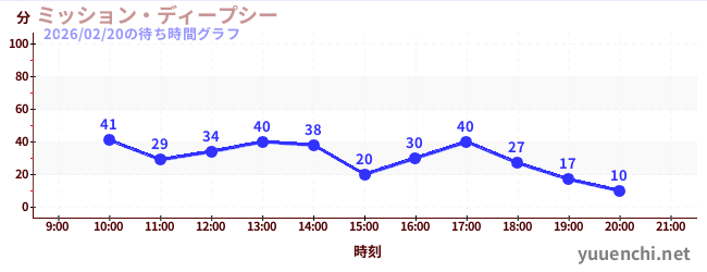 2026/02/20の待ち時間グラフ (ミッション・ディープシー)