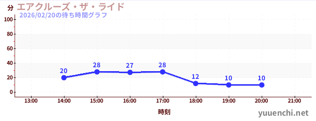 2026/02/20の待ち時間グラフ (エアクルーズ・ザ・ライド)