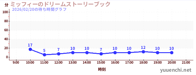 2026/02/20の待ち時間グラフ (ミッフィーのドリームストーリーブック)