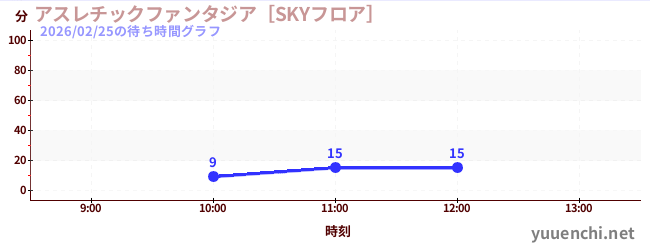 2026/02/25の待ち時間グラフ (アスレチックファンタジア[SKYフロア])