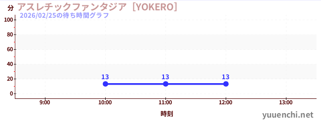 2026/02/25の待ち時間グラフ (アスレチックファンタジア[YOKERO])