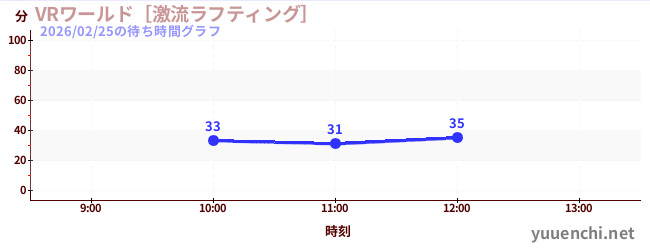 2026/02/25の待ち時間グラフ (VRワールド[激流ラフティング])