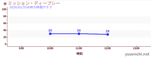 2026/02/25の待ち時間グラフ (ミッション・ディープシー)