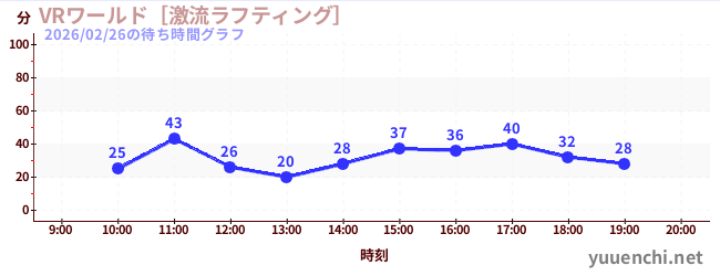 2026/02/26の待ち時間グラフ (VRワールド[激流ラフティング])