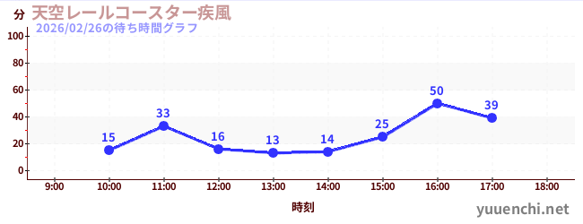 2026/02/26の待ち時間グラフ (天空レールコースター疾風)