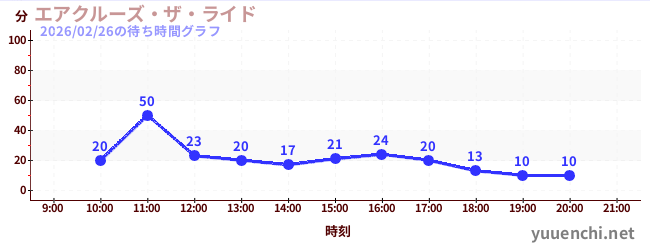 2026/02/26の待ち時間グラフ (エアクルーズ・ザ・ライド)