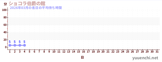 2026/03の一日平均待ち時間 (ショコラ伯爵の館)