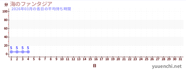 2026/03の一日平均待ち時間 (海のファンタジア)