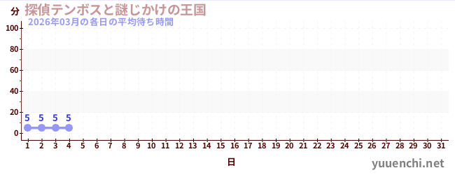 2026/03の一日平均待ち時間 (探偵テンボスと謎じかけの王国)