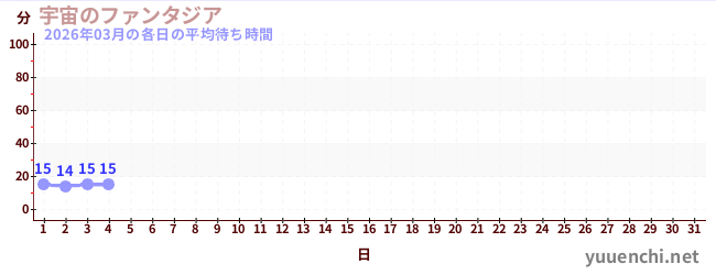 2026/03の一日平均待ち時間 (宇宙のファンタジア)