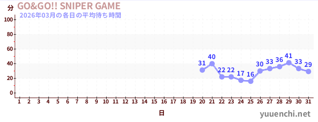 2026/03の一日平均待ち時間 (GO&GO!! SNIPER GAME)