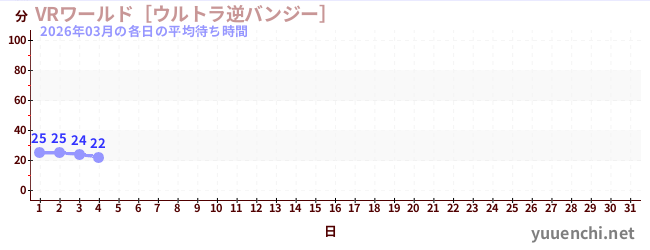 2026/03の一日平均待ち時間 (VRワールド[ウルトラ逆バンジー])