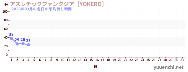 2026/03の一日平均待ち時間 (アスレチックファンタジア[YOKERO])
