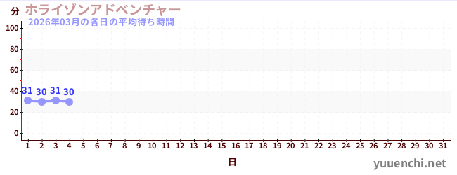 2026/03の一日平均待ち時間 (ホライゾンアドベンチャー)