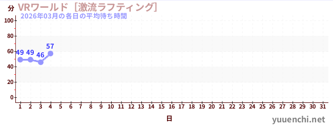 2026/03の一日平均待ち時間 (VRワールド[激流ラフティング])