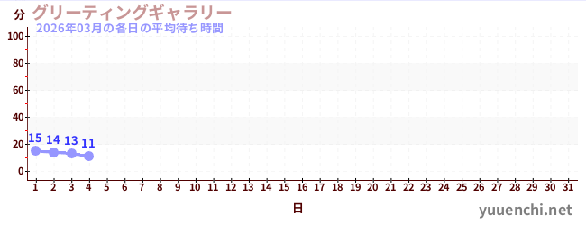2026/03の一日平均待ち時間 (グリーティングギャラリー)
