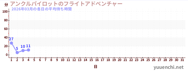 2026/03の一日平均待ち時間 (アンクルパイロットのフライトアドベンチャー)