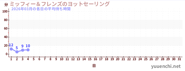 2026/03の一日平均待ち時間 (ミッフィー&フレンズのヨットセーリング)