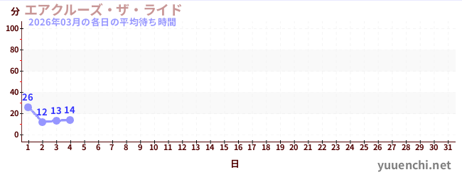 2026/03の一日平均待ち時間 (エアクルーズ・ザ・ライド)
