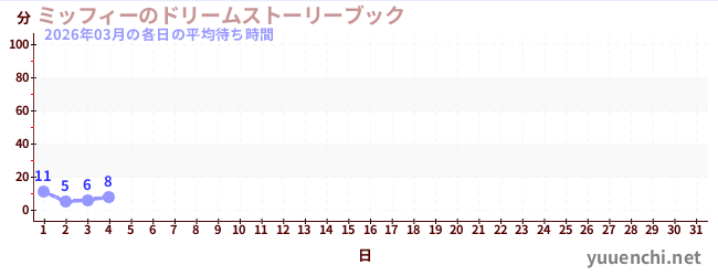 2026/03の一日平均待ち時間 (ミッフィーのドリームストーリーブック)