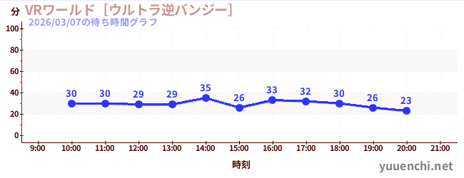 2026/03/07の待ち時間グラフ (VRワールド[ウルトラ逆バンジー])