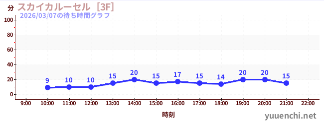 2026/03/07の待ち時間グラフ (スカイカルーセル[3F])